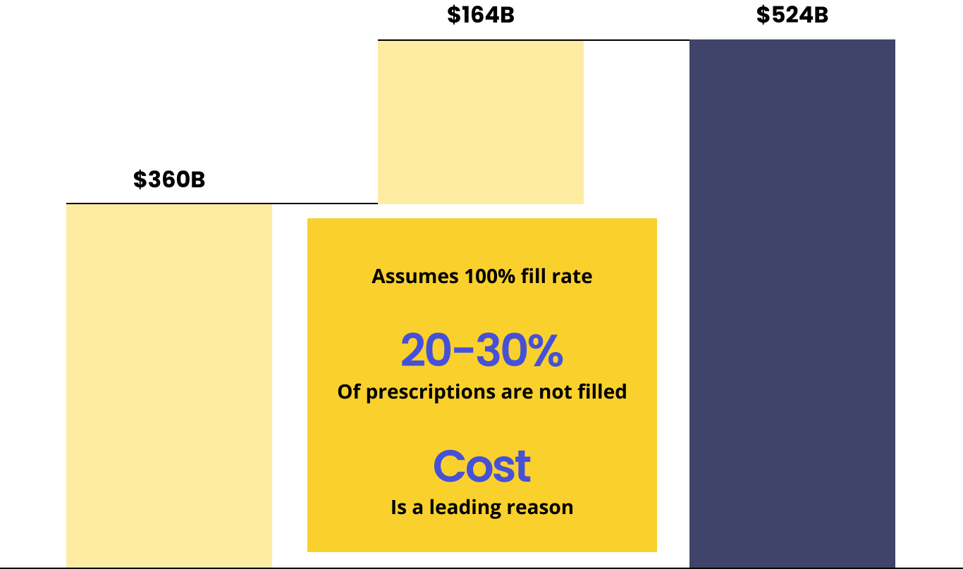 The anticipated annual growth rate for prescription drug expenditure in the U.S. stands at 5.7%. (Source: CMS. Growth projection is for years 2020 through 2028)